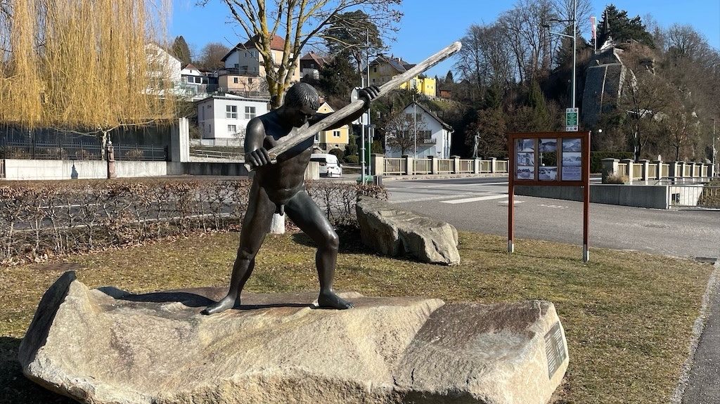 GREIN. Wir erreichen Grein und parken auf einem öffentlichen Parkplatz, entrichten die Gebühr und marschieren an der Donau entlang bis zum Ortsende, wo wir dann die Straßenseite hinüber zum Kalvarienberg wechseln.