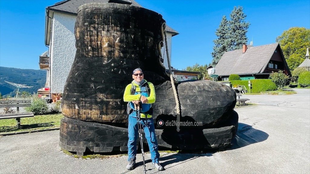 Wir erreichen das verschlafene Wanderdorf Soboth an der Grenze zu Kärnten um ca. 11:00 Uhr. Start wird beim Wahrzeichen dieses kleinen Örtchens, dem hölzerne Wanderschuh, sein.
