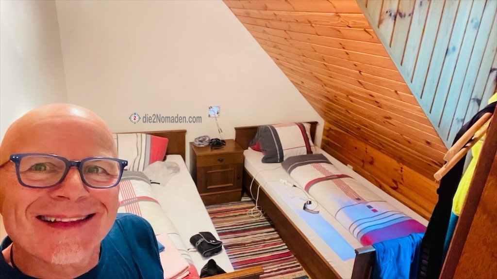 Ich verabschiede mich, falle schon um 21:00 Uhr todmüde ins Bett und höre auch die kleinen Enkerl der Chefleute nicht mehr. 😴