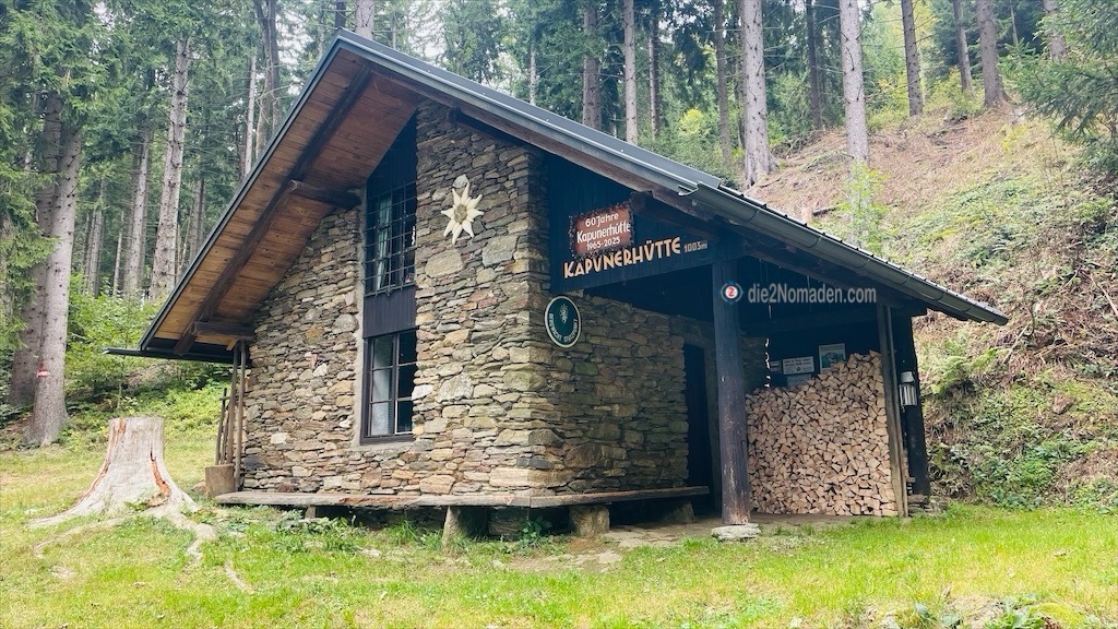Auf gut begehbaren Waldwegen und Forststraßen ging es Step by Step aufwärts und ich erreiche, ohne nennenswerte Highlights, nach guten 6 Stunden die Anhöhe. Oben angekommen, erwartet mich die Kapuner-Hütte, eine Selbstversorgerhütte des Österreichischen Alpenvereins, bei der man eine kleine Pause einlegen und sich stärken kann. Gleich nebenan, an einer Trinkwasserquelle, darf ich meine Wasserflaschen auffüllen.