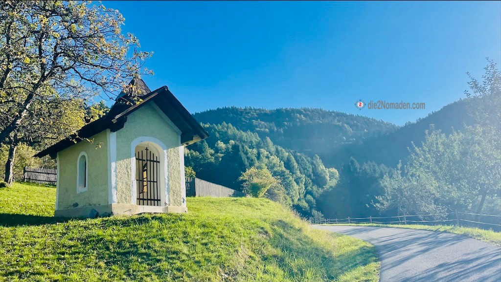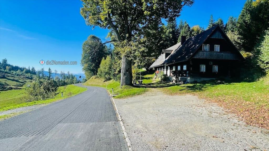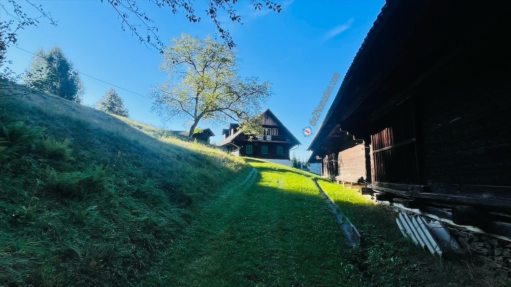 Eine Hinweistafel informiert mich, dass mein Quartier, das Panoramahaus Legat vulgo Wutschnig (der Gasthof wurde 2019 geschlossen), nur mehr 10 min. entfernt ist.