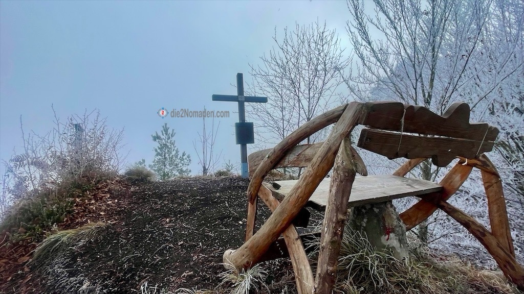 Am Kreuz oben herrschte das wohlige Gemisch aus Müdigkeit, Zufriedenheit und dem stillen Gedanken, dass Wandern fast genauso cool ist wie Biken. Fast.