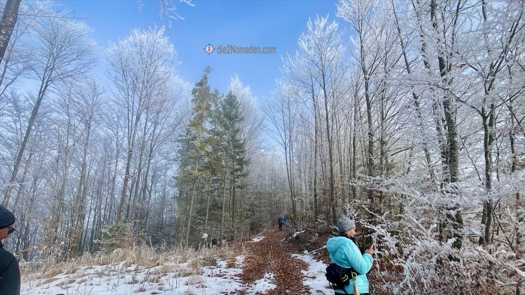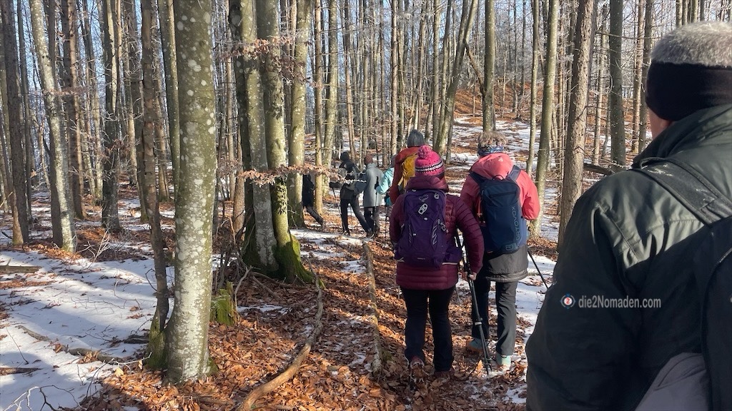 Der Weg führte hinein in einen nicht verschneiten Wald, der roch nach Erde, Moos und Geschichten, die nur erzählt werden, wenn keine Reifen surren. Mit jedem Schritt fühlte es sich an, als würde man tiefer eintreten in ein Abenteuer, das wir so gar nicht geplant hatten.