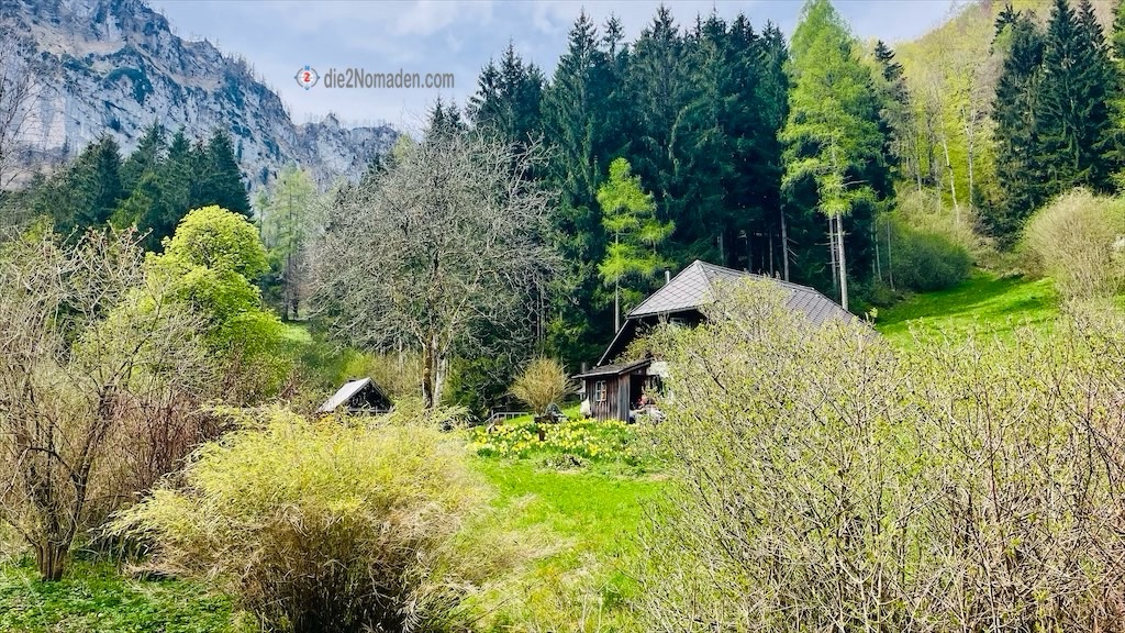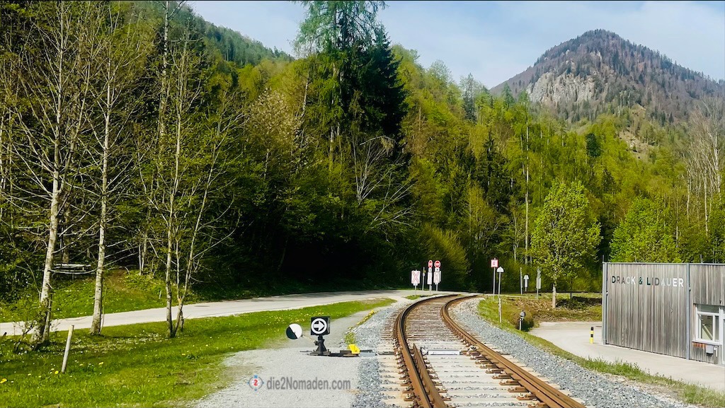 Im Hauergraben treffe ich wieder auf die Zivilisation – zumindest in Form einer Straße. Entlang des Bahngleises beziehungsweise gemütlich an die Alm entlang geht’s zurück Richtung Grünau, zurück zum Parkplatz. Die Beine sind müde, der Kopf ist leicht, und irgendwo zwischen Kuhglocken und Schotterweg denke ich mir: Genau so sollen Touren sein.
