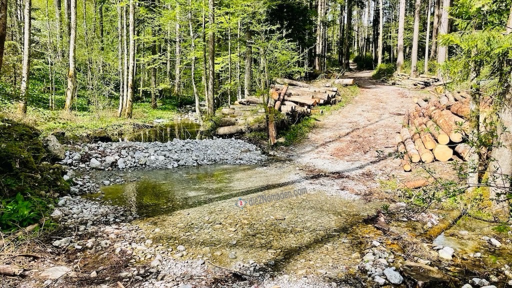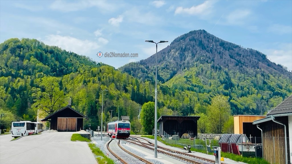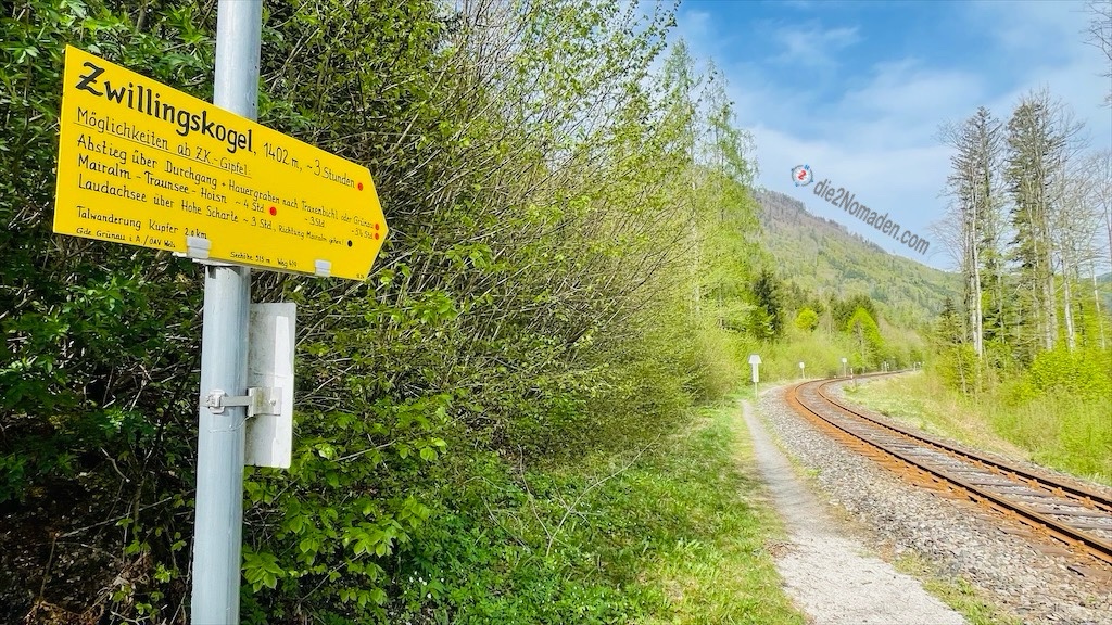 Los geht’s direkt vom P&R beim Bahnhof in Grünau im Almtal. Keine Parkplatzsuche, kein Rangieren zwischen SUVs – einfach aussteigen, Rucksack schultern und losstapfen. Zuerst ein kurzes Stück den Gleisen entlang, bevor der Aufstieg gleich anzieht, ohne lang zu fragen, ob man eh schon wach ist.