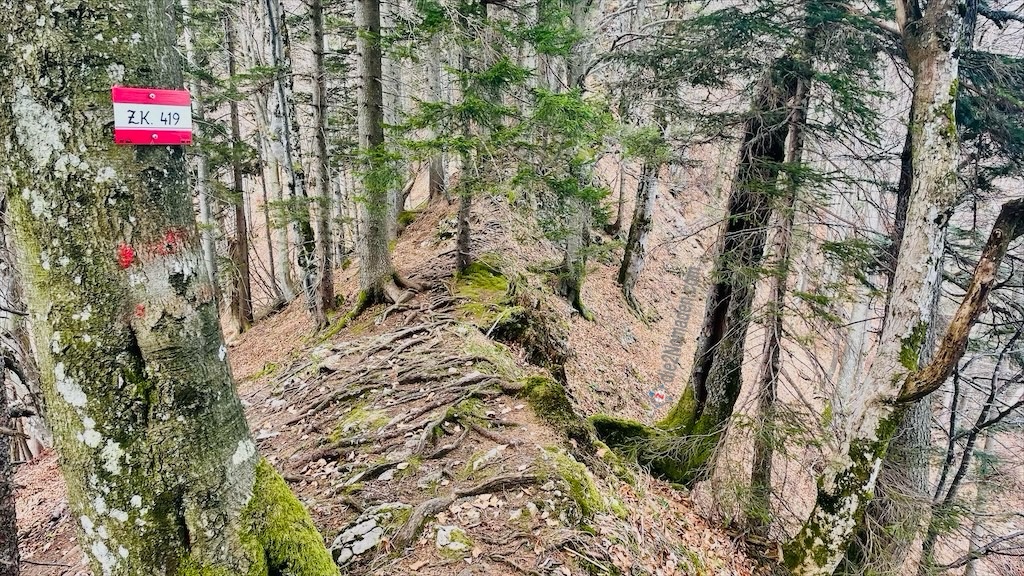 Etwas verwachsen finde ich den Einstieg und folge nun einem Jägersteig hinunter in den Hauergraben. Und ja: Jägersteige sind selten Spazierwege. Schmal, wurzelig, stellenweise steil – aber genau das macht den Reiz aus. Kein Umweg, keine Schleifen, einfach konsequent bergab.